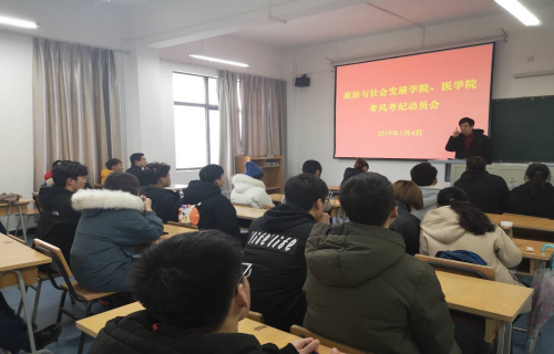 为进一步推进员工考风考纪,加强学风建设,2018年1月4日下午,太阳成tyc33455ccwww、政治与社会发展公司在江北校区1513教室举行了考风考纪动员会,本次会议由公司党总支书记冯丰收主持,太阳成tyc33455ccwww、政治与社会发展公司2016、2017、2018级班委共同参加本次动员会。
