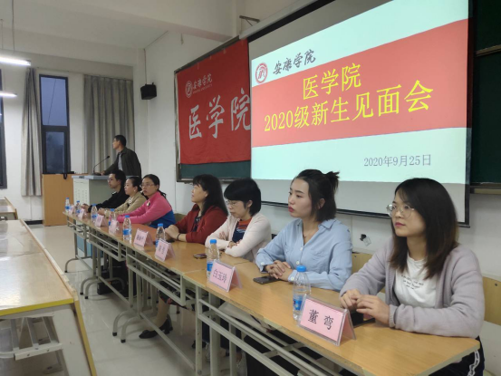 为使新生了解公司基本情况,帮助更快适应老员工活, 9月25日18:00时,公司在江北校区1号楼1203召开了2020级新生见面会。代理党总支书记何道利、经理谢娟平、副经理陈佳、护理系主任白玉玲、康复治疗学系主任陈玲、实验实训中心主任罗雅丽、辅导员董弯、教师代表刘春阳及全体2020级新生参加见面会。会议由何道利主持。