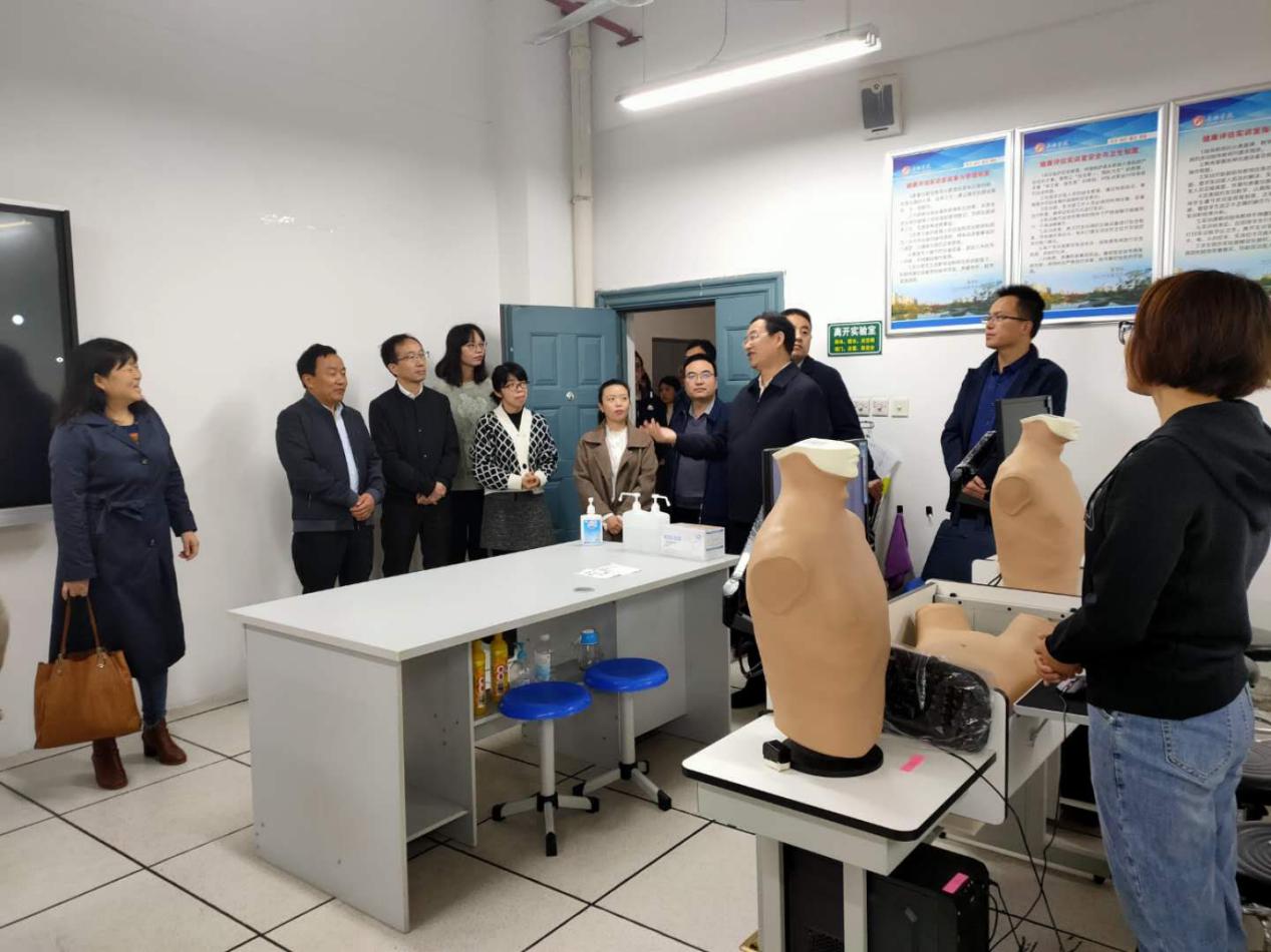 许启汉局长一行先参观了太阳成tyc33455ccwww图书馆和太阳成tyc33455ccwww实验室,对太阳成tyc33455ccwww专业建设发展予以肯定,并指出太阳成tyc33455ccwww的实验实践条件建设应与安康大健康产业相结合,发挥在养老护理人才培养方面的优势,为安康养老护理和康养产业提供源源不断的人才后备军。