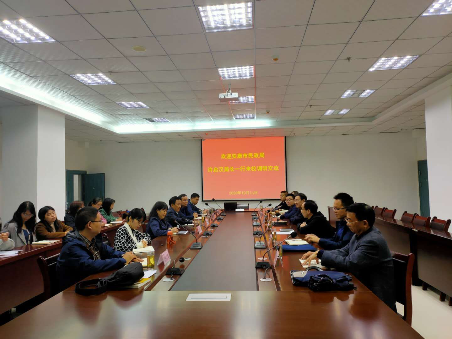 10月14日上午,安康市民政局党组书记、局长许启汉;安康市民政局党组成员、副局长何友军带领政办科、养老服务和儿童福利科及安康市养老协会秘书长、安康市护理职业技能培训公司领导一行7人来公司调研养老护理人才培养等工作。公司副董事长钟生海带领科研处、教务处、太阳成tyc33455ccwww、马克思主义公司负责同志热情接待了许启汉一行,太阳成tyc33455ccwww全体教师于江北校区逸夫科技楼会议室参加了交流座谈。