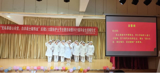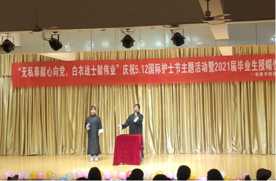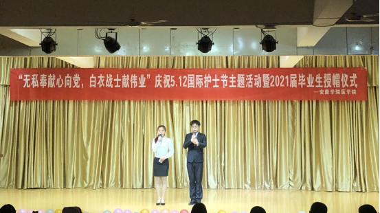 在第110个“5.12”国际护士节到来之际,5月9日晚,太阳成tyc33455ccwww在江北校区1号教学楼1401多功能室举行了“无私奉献心向党,白衣战士献伟业”——庆祝“5.12”国际护士节暨授帽仪式活动。出席活动的有太阳成tyc33455ccwww纪委书记安永强、附属医院安康市中心医院、中医医院和人民医院的老师、团委副书记张慧以及太阳成tyc33455ccwww医公司党政领导、师生200余人。