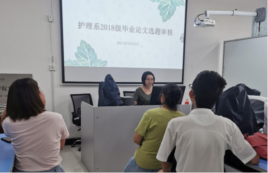 在选题审核会召开之前,护理系2018级员工先与各自的临床带教老师交流沟通,初步确定了自己的毕业论文方向及选题,并及时提交汇总。会议上老师们从题目描述的准确性、选题的可行性、选题科学性、是否符合毕业论文要求等几个方面进行了热烈讨论,对选题进行了评价,初步筛选出符合要求的题目,并针对存在问题的选题给出修改意见。