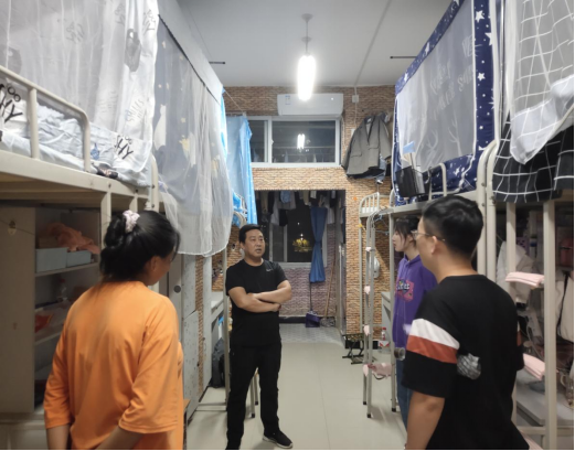 进入宿舍后,同学们受宠若惊,两位老师对同学们表达了节日的祝福并与他们亲切交谈。刘连德一一了解同学们的家乡,询问他们这几天假期如何度过以及之后几天的安排。得知部分同学有意向去游玩时,刘连德推荐了周边景点。刘连德强调长假期间同学们更应当注意劳逸结合以及安全问题,对于只身一人留宿同学,两位老师叮嘱他们可以同其他宿舍一起结伴度过,让假期不孤单。