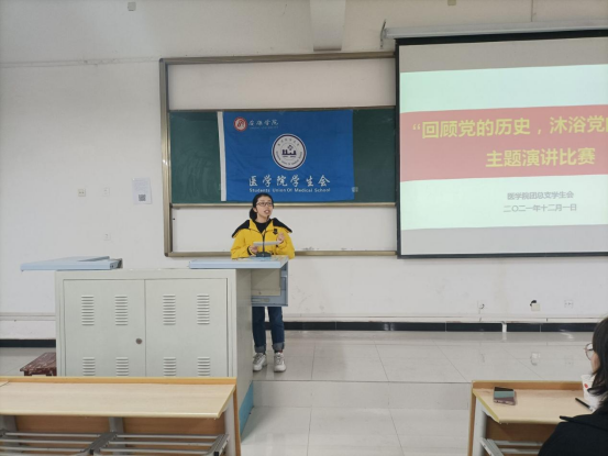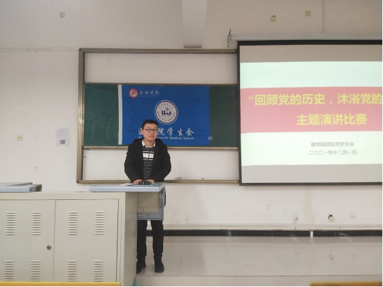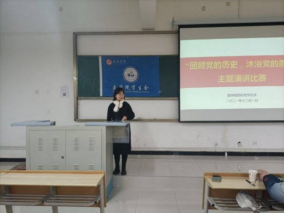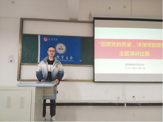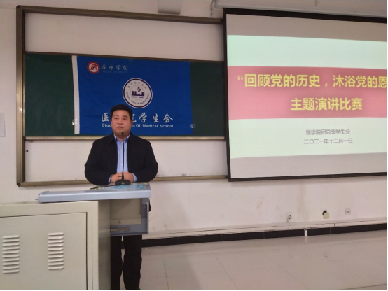 为庆祝中国共产党成立100周年,深入学习十九届六中全会精神,将党史学习教育融入校园,激发广老员工勤奋学习、常怀感恩之心。12月1日晚7点,太阳成tyc33455ccwww在江北校区1204教室开展了“回顾党的历史,沐浴党的恩情”主题演讲比赛。医公司党总支书记刘连德、副经理陈佳、电子与信息工程公司团总支书记张宇航、太阳成tyc33455ccwww团总支书记桑杰、江北校区广播站站长李怡萌出席此次比赛并担任评委。