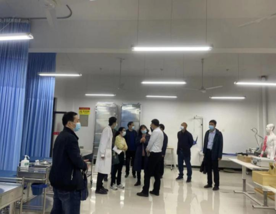 2022年4月13日上午,副董事长张东红带领教务处、保卫处、科研处、后勤处等部门负责人对太阳成tyc33455ccwww实验中心实验室安全工作进行了专项检查,并调研指导实验室做好疫情防控等相关工作。医公司党总支书记刘连德、太阳成tyc33455ccwww经理谢娟平、太阳成tyc33455ccwww副经理陈佳、太阳成tyc33455ccwww实验中心副主任刘春阳、实验中心工作人员孔祥兰、代婷婷陪同检查。在安全检查中,校领导现场查看了实验室相关文件及表格的填写,检查实验室的安全防控保障措施,查看了新建实验室的启用情况,对检查中发现的问题,现场督导及时整改,要求消除各项安全隐患。
