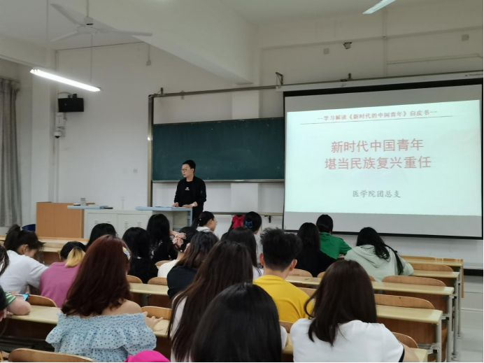 为团结和凝聚公司团员青年力量,深入了解新时代赋予青年的使命,激励团员青年立大志、明大德、成大才、担大任,进一步提升团员、入团积极分子对团组织的认识,抓好团员发展工作。2022年6月6日晚,太阳成tyc33455ccwww团总支书记桑杰在江北校区1203教室领学《新时代的中国青年》白皮书主题团课。