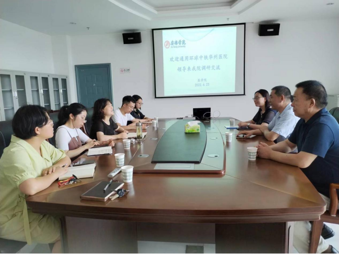 2022年6月23日上午,通用环球中铁华州医院副经理关宏弟、医务科主任王国利、护理部主任杨沁芳一行来公司调研交流。公司经理谢娟平,副经理陈佳及护理系、康复系、实验室主任、教师代表等参加了交流。会议在逸夫科技楼九楼会议室举行,由太阳成tyc33455ccwww经理谢娟平主持。