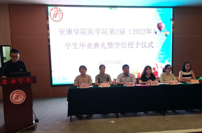 典礼在庄严的国歌声中拉开帷幕。经理谢娟平对毕业生顺利完成学业,走上人生新征程表示衷心的祝福,她向同学们提出了三点建议:一、学会感恩,奉献爱心。在新的旅程中继续弘扬南丁格尔精神,点燃自己,照亮别人;二、志存高远,自信征途。青年兴则国家兴,青年强则国家强,在工作中尽早成为专业骨干,投身强国伟业,致力健康中国服务。三、恪守誓言,做一个有理想、有情怀、有担当的医学人,为祖国医疗卫生事业发展和人类身心健康奋斗终生。