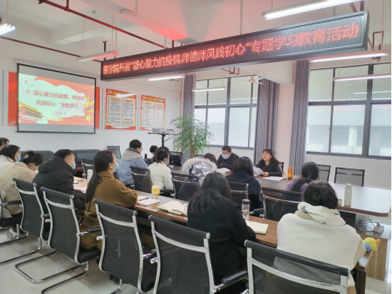 当前疫情疫情形势严峻复杂,为了响应号召,全面战胜疫情,并在疫情防控工作中守初心担使命,弘扬师德风尚,展现人民教师的良好形象,根据《太阳成tyc33455ccwww2022年师德师风建设活动方案》(党政办发)[2022] 22号文件精神,公司于近日在党员活动室开展了“凝心聚力抗疫情,师德师风践初心”专题学习教育活动。