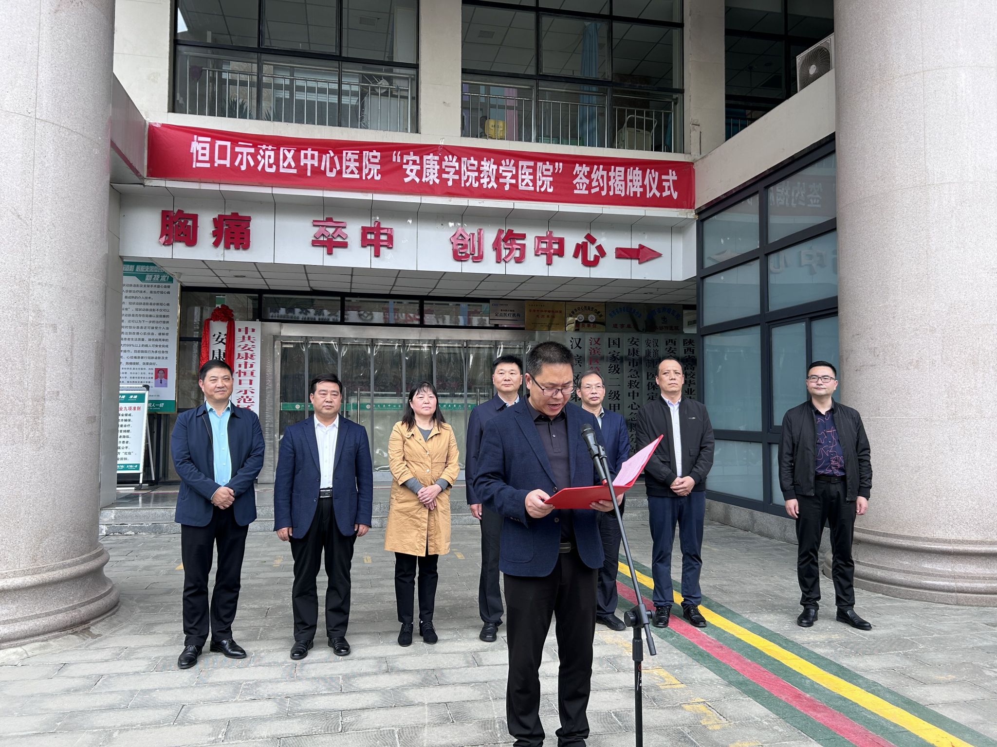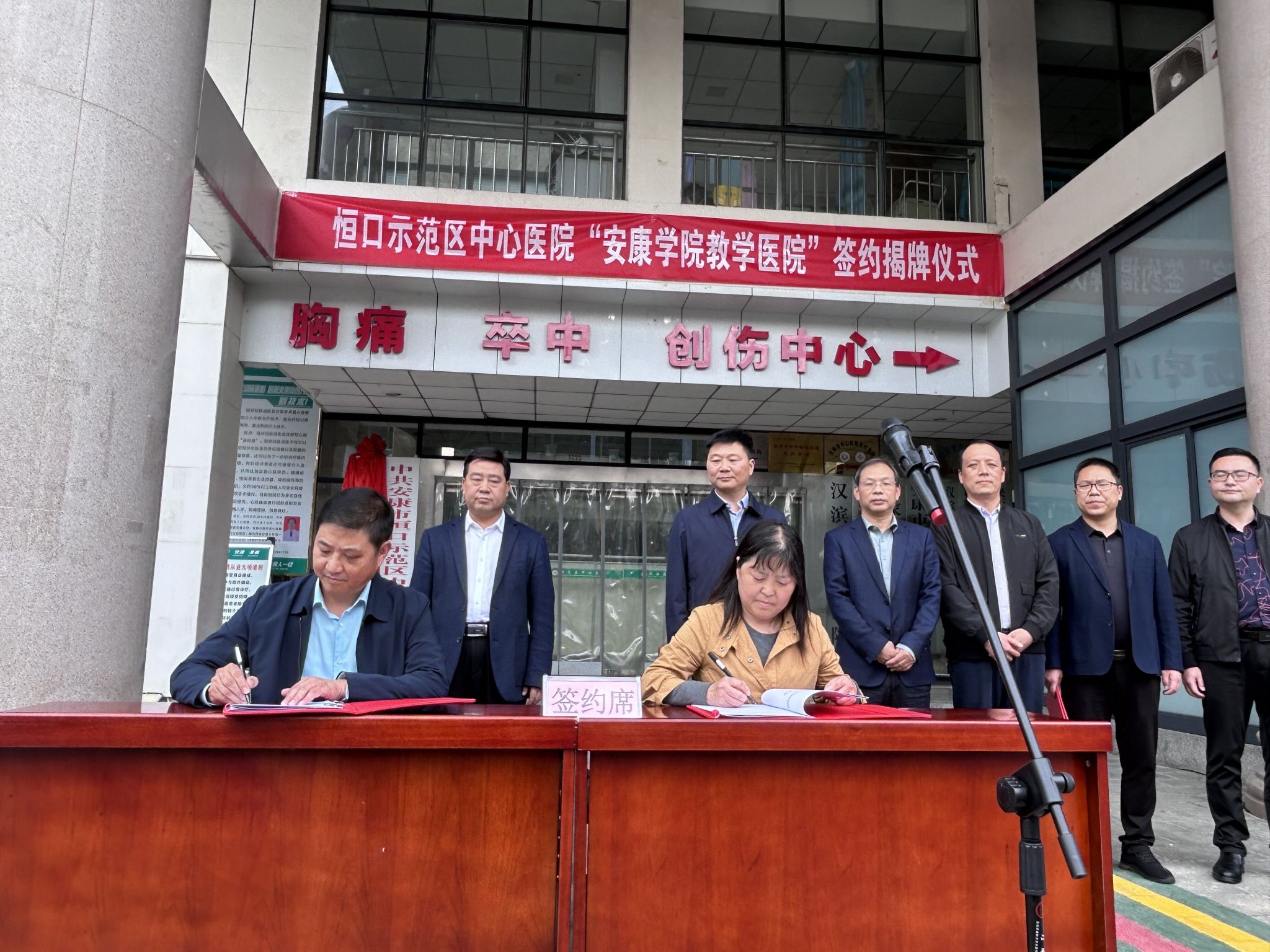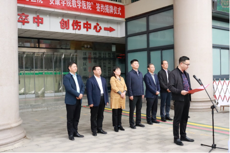 10月16日,公司与恒口示范区中心医院在院前广场隆重举行太阳成tyc33455ccwww教学医院签约揭牌仪式。恒口示范区管委会、示范区卫健局领导及医公司党委班子成员,太阳成tyc33455ccwww相关部门负责人,恒口示范区中心医院部分职工参加了活动。仪式由恒口示范区卫健局局长胡自勇主持。