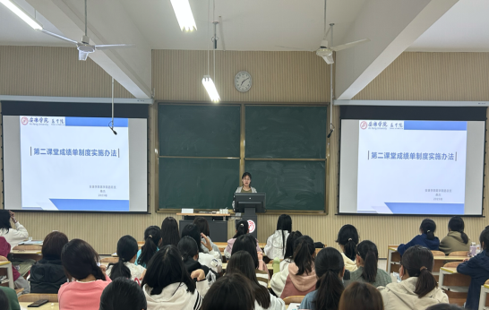 康锦华分别从第二课堂成绩单含义、模块设定、项目积分标准、活动质量管理办法四个方面进行阐述,着重带领23级新生了解思想成长、社会实践、志愿公益、创新创业、文体活动、技能特长和专业特色八个模块的积分标准和认定办法,提醒同学们要结合自己的能力、兴趣和特长,自主选择参加相应的第二课堂实践活动和课程,取得规定的学分。随后对各班负责发放第二课堂活动的同学们进行培训。