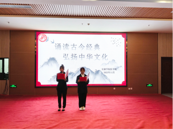 活动伊始,主持人介绍比赛规则和评分标准。比赛过程中,选手们以饱满高昂的情绪,富于表现力和感染力的语言充分演绎了对经典作品的感悟,给观众带来了一场精彩的视听盛宴。他们用精彩的表现打动了评委和每一位观众,现场不时响起阵阵热烈的掌声。随后在知识竞答环节,主持人提出与传统医学知识相关问题,同学们积极参与,踊跃回答,现场气氛热烈。