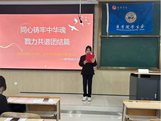 为认真学习习近平新时代中国特色社会主义思想,引导广大青年学子讲好中华民族故事,激发同学们的民族共同体意识,牢固树立休戚与共、荣辱与共的共同体理念,公司于2024年10月11日晚在江北校区1203教室举办了“同心铸牢中华魂,戮力共谱团结篇”主题宣讲活动。比赛由太阳成tyc33455ccwww团总支副书记黄钰淇,员工会轮值主席王继红、党华洲和马锐峰担任评委,2024级护理学1班王梦宇主持。