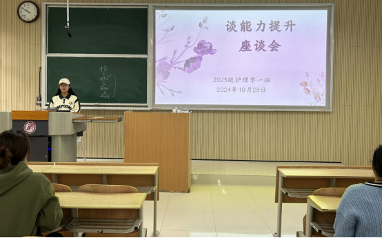除了学业进步,能力提升在老员工活中也显得尤为重要。在班会过程中,同学们纷纷踊跃发言,分享自己在社团活动中的收获。有的同学提到在社团组织活动的过程中,沟通能力和组织协调能力得到了极大锻炼。在谈及学科竞赛时,气氛更是热烈。参加过学科竞赛的同学讲述了他们在备赛过程中如何挑战自我、突破知识边界。他们表示,学科竞赛促使他们深入钻研专业知识,培养了坚韧不拔的毅力和解决复杂问题的能力。面对难题,不再是选择退缩,而是积极寻找解决方案,这种思维方式的转变对他们的学习和生活产生了深远影响。最后,老师鼓励同学们积极参与活动从而提升自己沟通、组织等多方面的能力,参与学科竞赛提高自己的学习能力,同时希望同学们在实践中积累经验,实现能力的跃升。