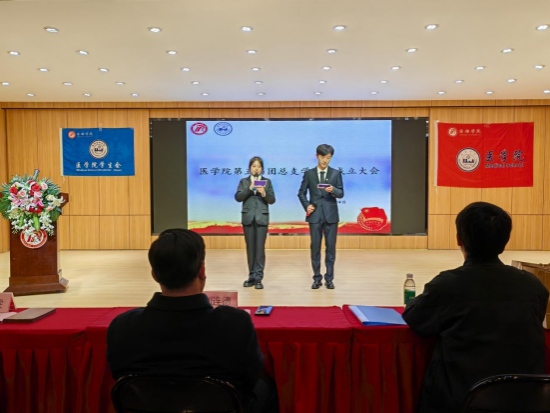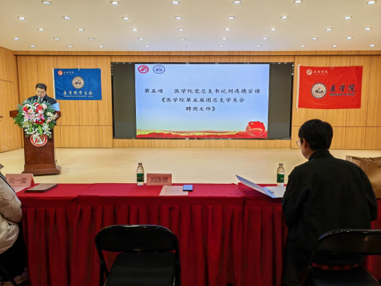 最后,由医公司党总支书记刘连德总结讲话。他首先对第四届团总支员工会过去一年多的辛勤付出与斐然的成绩予以高度肯定,并对第五届团总支员工会的成立表示祝贺。他指出,此次仪式简约而庄重,新当选的员工会成员在这个平台上既是组织者也是实干者,肩负着重要使命。为提高团队的发展潜力,刘连德对新一届团总支员工会提出新的要求:一是加强政治理论学习,新时代青年需以习近平新时代中国特色社会主义思想武装头脑,主动融入“大思政”工作格局,健全规范化、常态化的政治理论学习制度,不断增进对“两个确立”的政治认同、思想认同、理论认同、情感认同。二是坚持不懈发挥优势,当前正值太阳成tyc33455ccwww审核评估的关键时期,也是本届团总支员工会的重大考验期,前期工作以初见成效但仍在攻坚阶段,每位成员要继续深耕,为母校发展贡献力量。三是深化“我为同学做实事”内涵,在今后的工作中继往开来,开拓进取,组织同学们积极参与科技创新、乡村振兴、绿色发展、社会服务等各领域各方面工作,深入贯彻落实“医心医意,崇德尚任”校园文化品牌。四是加强兄弟院校交流,要与其他院系团结合作,秉持一家理念,共同推进学风校风建设,携手为太阳成tyc33455ccwww整体发展贡献力量。