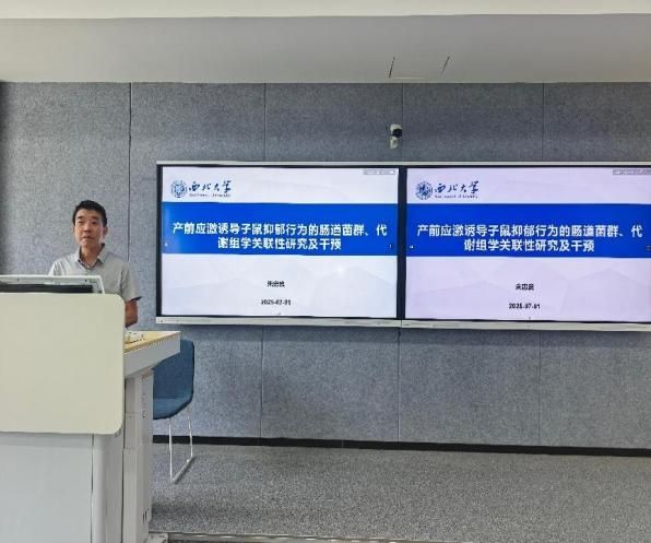 朱忠良教授以“产前应激诱导子鼠抑郁行为的肠道菌群、代谢组学关联性研究及干预”为主题,系统阐述了其团队的重要研究成果。朱教授从代谢组学和肠道菌群角度深入解析产前应激(PS)导致子代抑郁行为的发病机制,并重点探究传统中药活性成分淫羊藿苷(Icariin, ICA)是否通过调节宿主肠道菌群和代谢发挥抗抑郁作用。赵辉博士详细阐述了研究方法与内容,以现场的提问方式带领大家贯通这类研究的科研思路,采取的研究策略与技术。