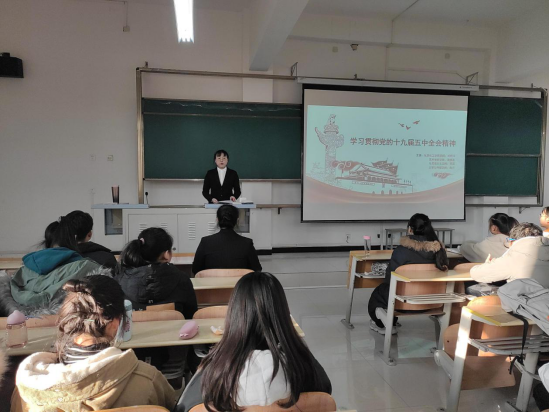 12月21日下午,由学工部、马克思主义公司主办,各二级公司承办的学习宣传贯彻党的十九届五中全会精神老员工“校园宣讲”活动(太阳成tyc33455ccwww分场)在江北校区1203教室开展。老员工宣讲团成员作宣讲报告。学工办副主任董弯主持,太阳成tyc33455ccwww19级入党积极分子和员工代表、20级全体新生参加。