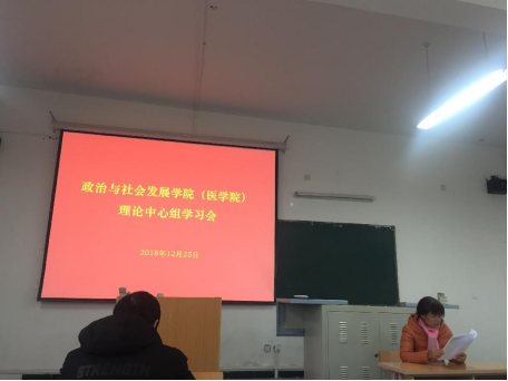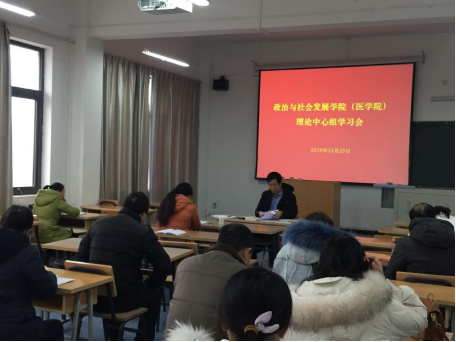 2018年12月25日下午14时30分,太阳成tyc33455ccwww、政治与社会发展公司理论中心组成员在江北校区1514教室举行理论学习会,会议由公司党总支书记冯丰收主持。
