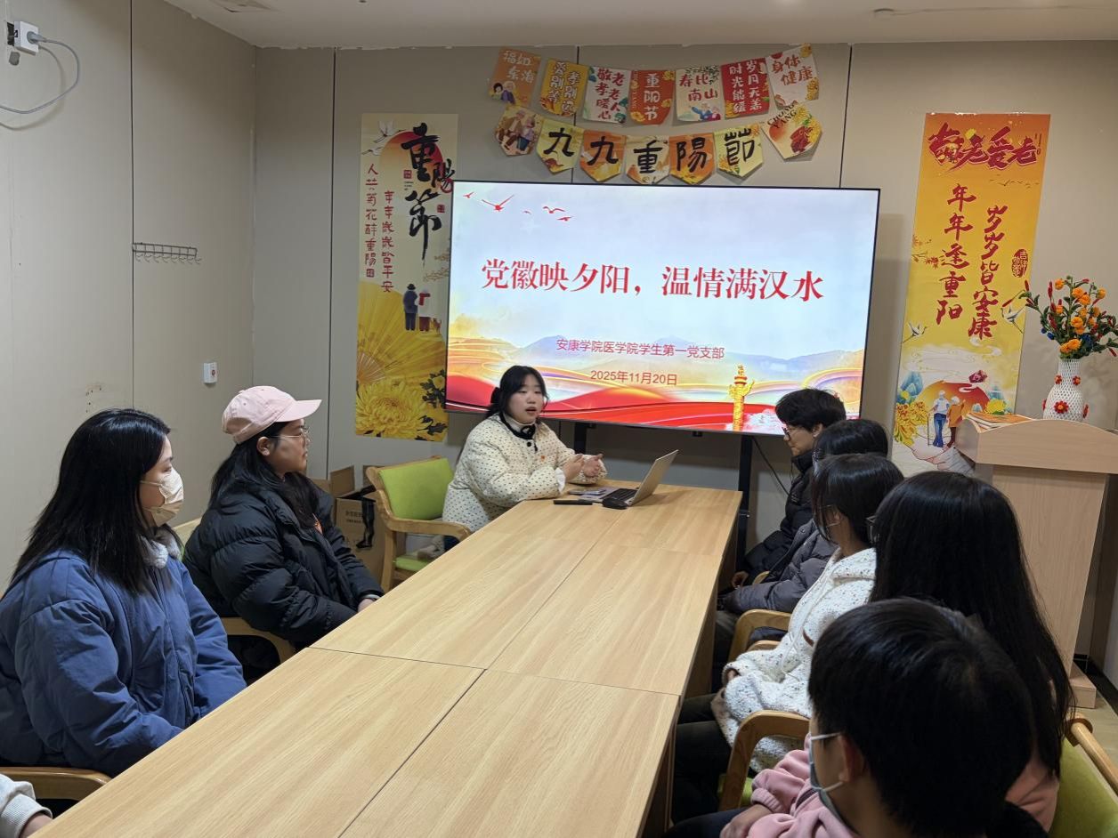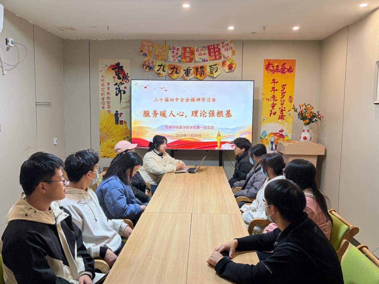 所有服务环节结束后,党支部抓住契机,在怡养院的活动现场组织了一场别开生面的二十届四中全会精神学习会。会议由晁一雯主持,党支部成员围坐一起,结合刚刚的服务实践,共同学习了会议关于“推进国家治理体系和治理能力现代化”等重要精神。大家深刻认识到,敬老爱老、完善养老服务正是国家治理体系中的重要一环,而作为青年党员,深入基层、服务群众正是参与社会治理、贡献青春力量的直接体现。