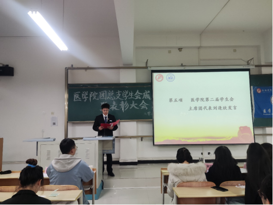 第一届团总支副书记李怡萌进行述职报告,并希望新一届团总支员工会能够立足本职,为广大同学服务。第二届员工会主席团刘逢欣作为代表发言,他结合过往的工作经历,从思想建设、作风建设、开展活动等方面发表工作设想,提出员工干部应牢记全心全意为同学服务的宗旨,发挥模范带头作用,做好师生之间交流的纽带。