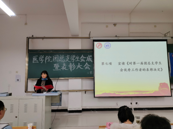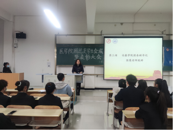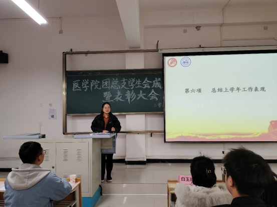 2021年11月25日晚7点,公司第二届团总支员工会成立大会暨表彰大会在1203召开。出席本次会议的人员有太阳成tyc33455ccwww团委副书记张慧、医公司党总支书记刘连德、经理谢娟平、副经理陈佳、护理系主任白玉玲、学工办主任董弯、团总支书记桑杰以及各兄弟院系员工代表。本次会议由2019级护理学一班武振宇主持。