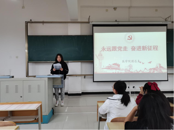 活动开始,2020级学入党积极分子赵怡欣和孙文洁带领同学们领学了习近平总书记在庆祝中国共产主义青年团成立100周年大会上的讲话。随后同学们展开热议。21级护理学1班团支书张雯清表示:作为一名团支部书记,一名入党积极分子,我会牢牢记住习近平总书记的讲话“做青年友,不做青年“官”,多为青年计,少为自己谋”,带头学习马克思主义理论,树立共产主义远大理想和中国特色社会主义共同理想,自觉践行社会主义核心价值观,大力弘扬爱国主义精神;要做刻苦学习、锐意创新的模范,带头立足本职工作、苦练本领、创先争优,努力成为护理行业骨干、青年先锋。21级康复治疗学1班副班长尚柄宇表示:习近平总书记讲话全面回顾了百年来共青团坚定不移听党话、跟党走的青春历程,充分肯定共青团在党的领导下,团结带领一代代团员青年为实现中华民族伟大复兴中国梦作出的重要贡献。我们作为一名21世纪的团员,要在各方面都时刻起到模范带头作用,在新时代新征程上,在美好的青春年华里要展示青年的朝气和活力,要用奋斗书写理想的新篇章。