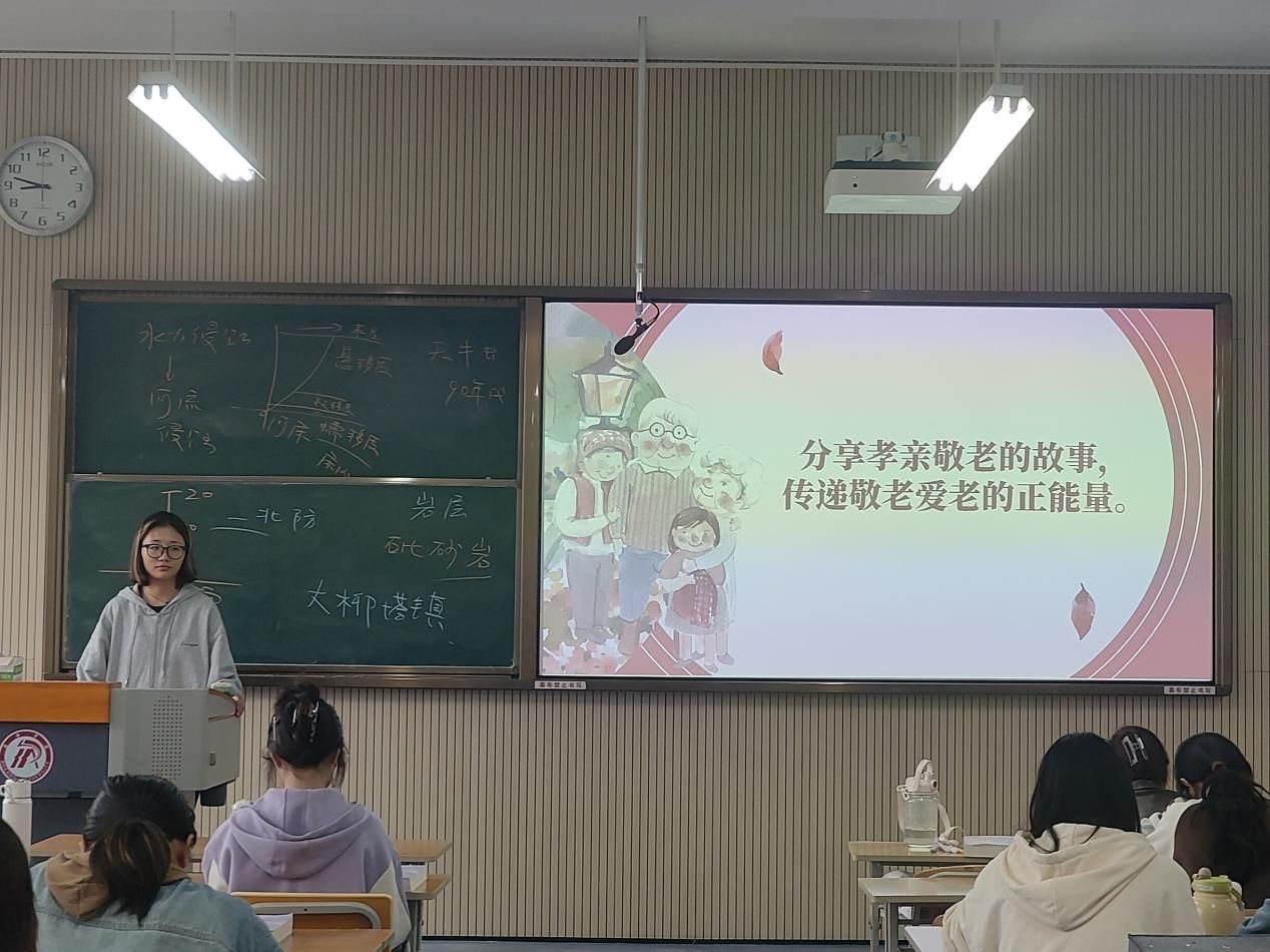 团课结束后,各支部团员代表分享身边及社会上的孝亲敬老案例,这些案例生动传递了敬老爱老的正能量,也进一步加强了同学们对敬老爱老的内涵理解。