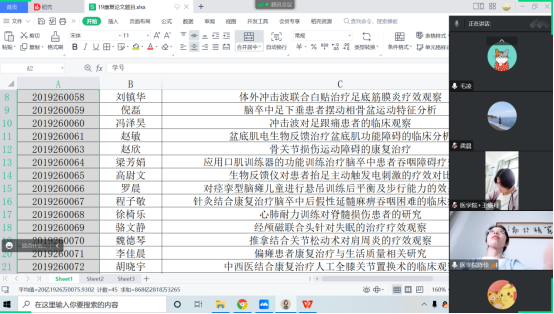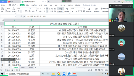 在会议召开之前,康复治疗学2019级员工与各自临床带教老师沟通,初步确定了自己的毕业论文方向及选题,并及时提交汇总。会议上老师主要围绕选题的适宜性、应用性、可行性、不重复性和创新性等方面展开,杜绝选题假大空,脱离实际。全体教师认真审核了员工提交的选题,初步筛选出符合要求的题目,对研究范围过大、观点存在争议、不具备研究价值、内容指向不明确的选题给出了修改建议,要求及时调整修改。力争做到所有选题与专业知识和毕业实习紧密结合,能够综合考查员工运用所学知识分析和解决实际问题的能力,实现真题真做。