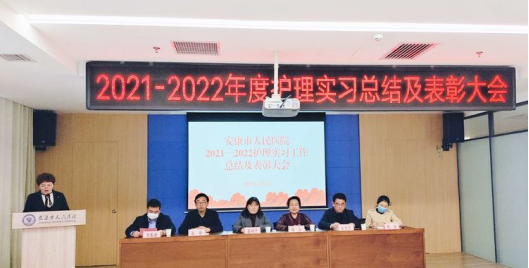 2022年3月3日安康市人民医院护理部在门诊16楼第二会议室召开2021-2022年度护理实习工作总结暨表彰大会。安康市人民医院副经理张昕、金兆军副经理、科教科负责人陈卓,各科护士长、全体实习生共计100余人参加。公司经理谢娟平、书记刘连德、副经理陈佳,安康职业技术公司护理公司经理陈红、教务科干事刘小敏参加了表彰大会。会议由护理部主任张定凤主持。