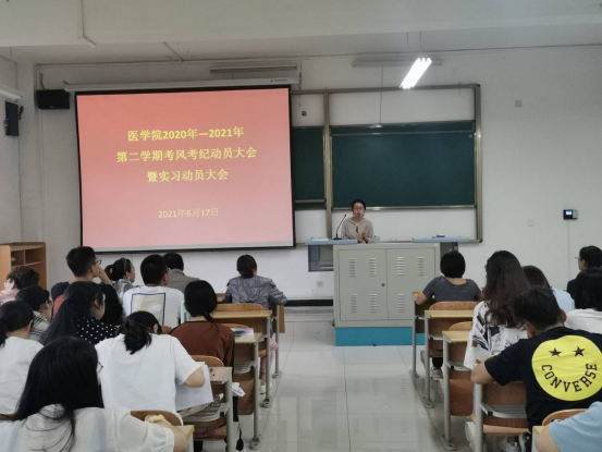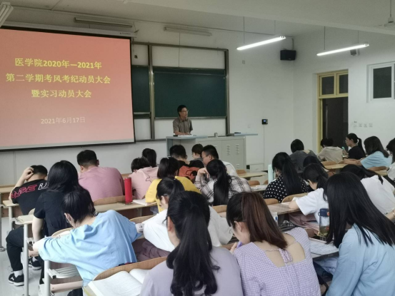 通过考风考纪教育,进一步强化了同学们的纪律意识和诚信自觉,相信同学们会以良好的心态、扎实的准备迎接未来的各类考试、考验。希望同学们在期末考试中取得优异成绩,祝愿全体实习生在实习期间能有新收获、新成长。