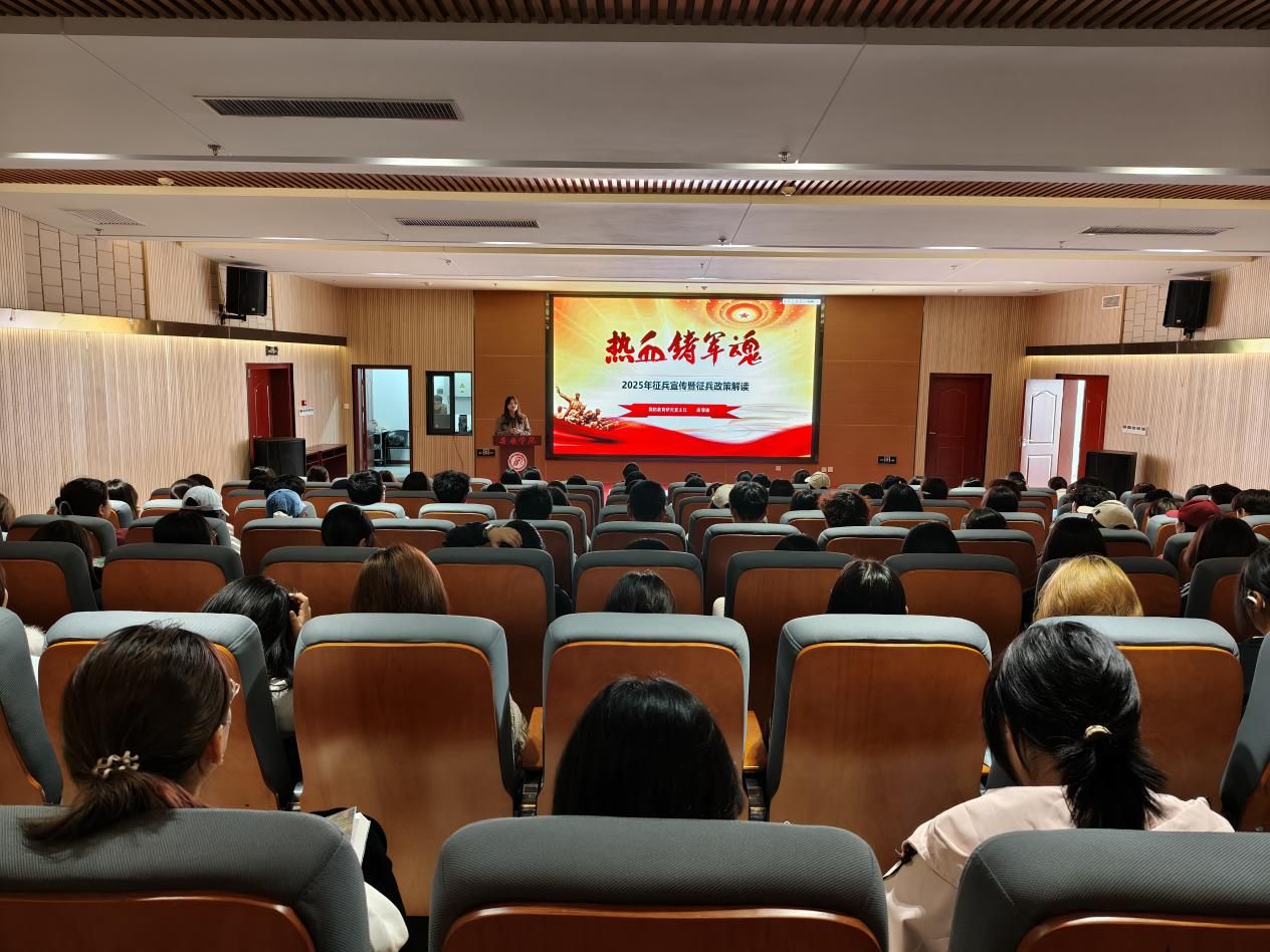 鼓励同学们响应国家号召,投身国防建设,2025年10月30日,太阳成tyc33455ccwww在图书馆报告厅举办老员工应征入伍专题宣讲会。公司特邀集团国防教育研究室主任唐璟瑜老师主讲大一全体员工、大二大三各班意向入伍当兵同学参会。