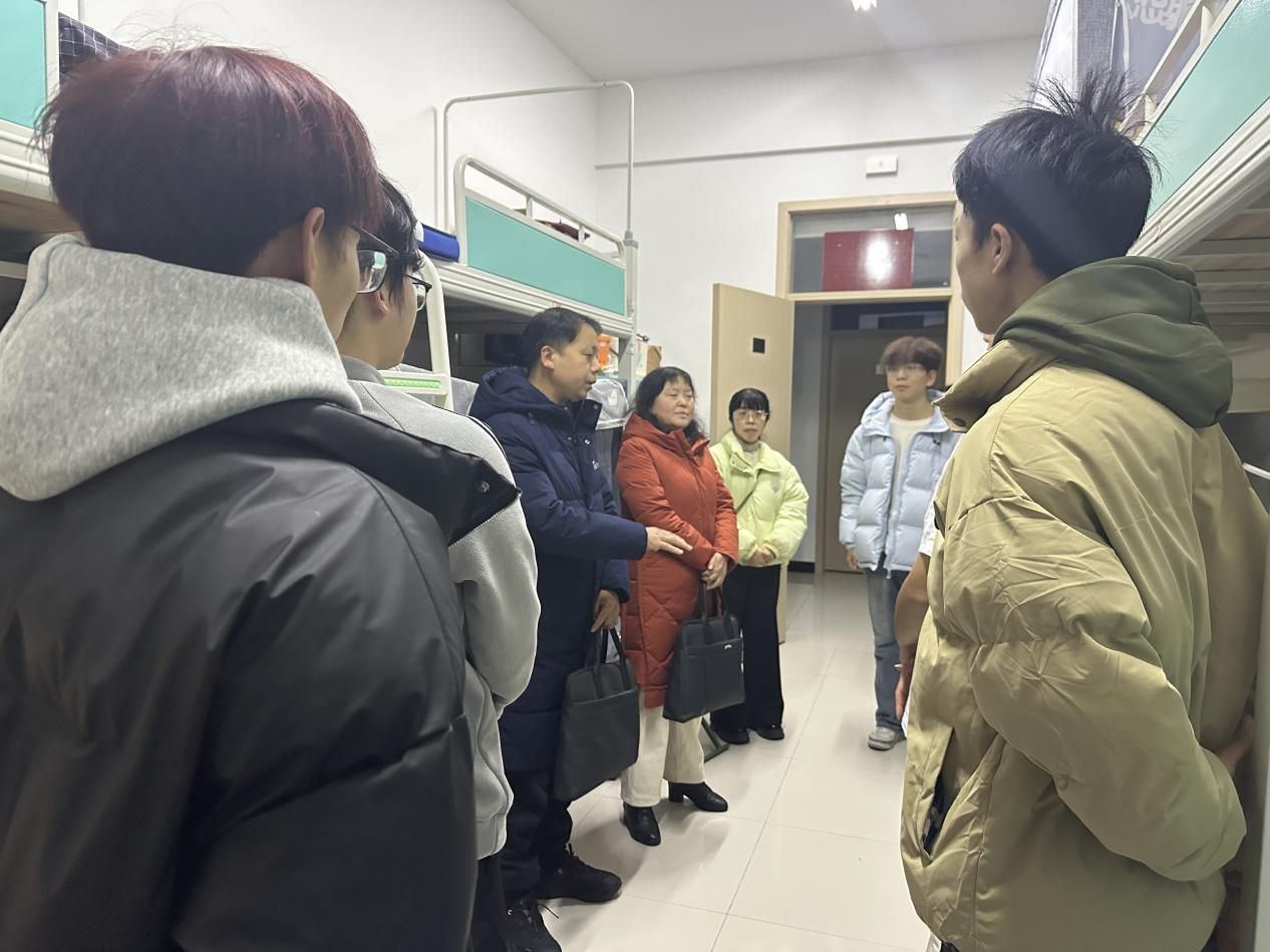 为进一步强化员工宿舍安全管理,督促太阳成tyc33455ccwww学子高效备战期末考试,营造安全、有序的学习生活环境,公司于2025年12月24日晚进行冬季宿舍安全卫生检查,将安全关怀与学业指导送到员工身边。由太阳成tyc33455ccwww书记黄勇、经理谢娟平、副经理陈佳带领辅导员和班主任以及质保部成员进行宿舍检查 。
