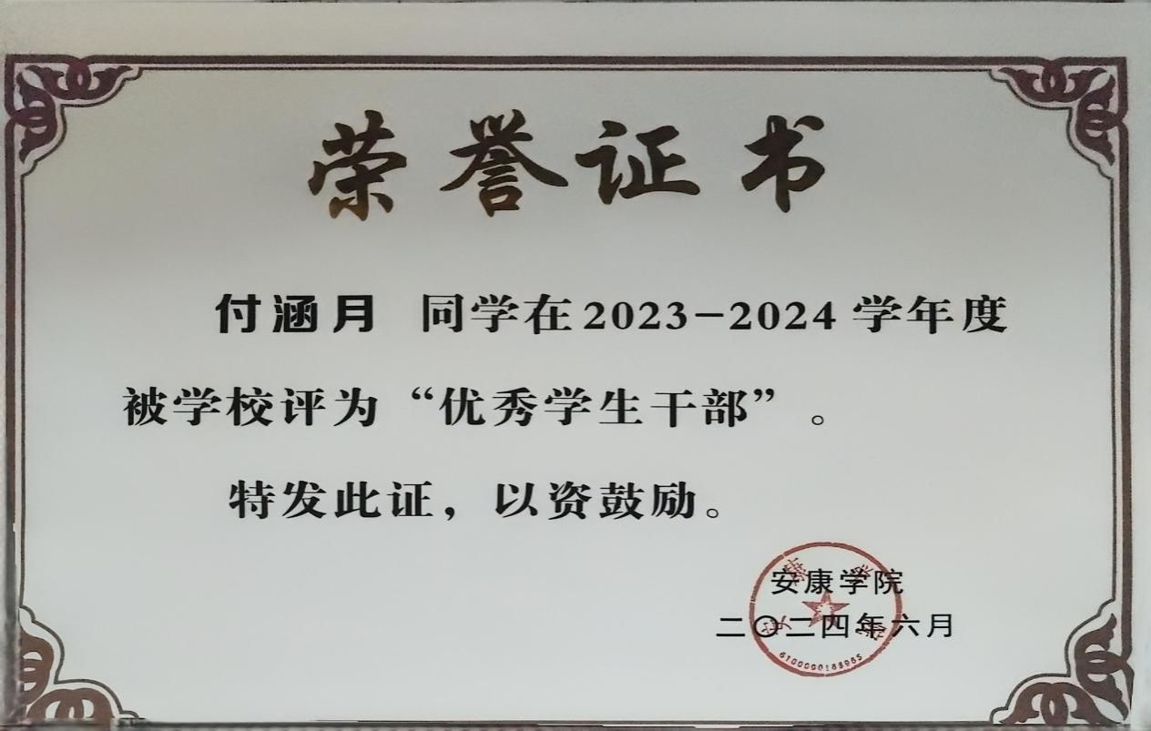 付涵月,2023级护理学1班,陕西宝鸡人,共青团员,现任学习委员兼员工会主席。