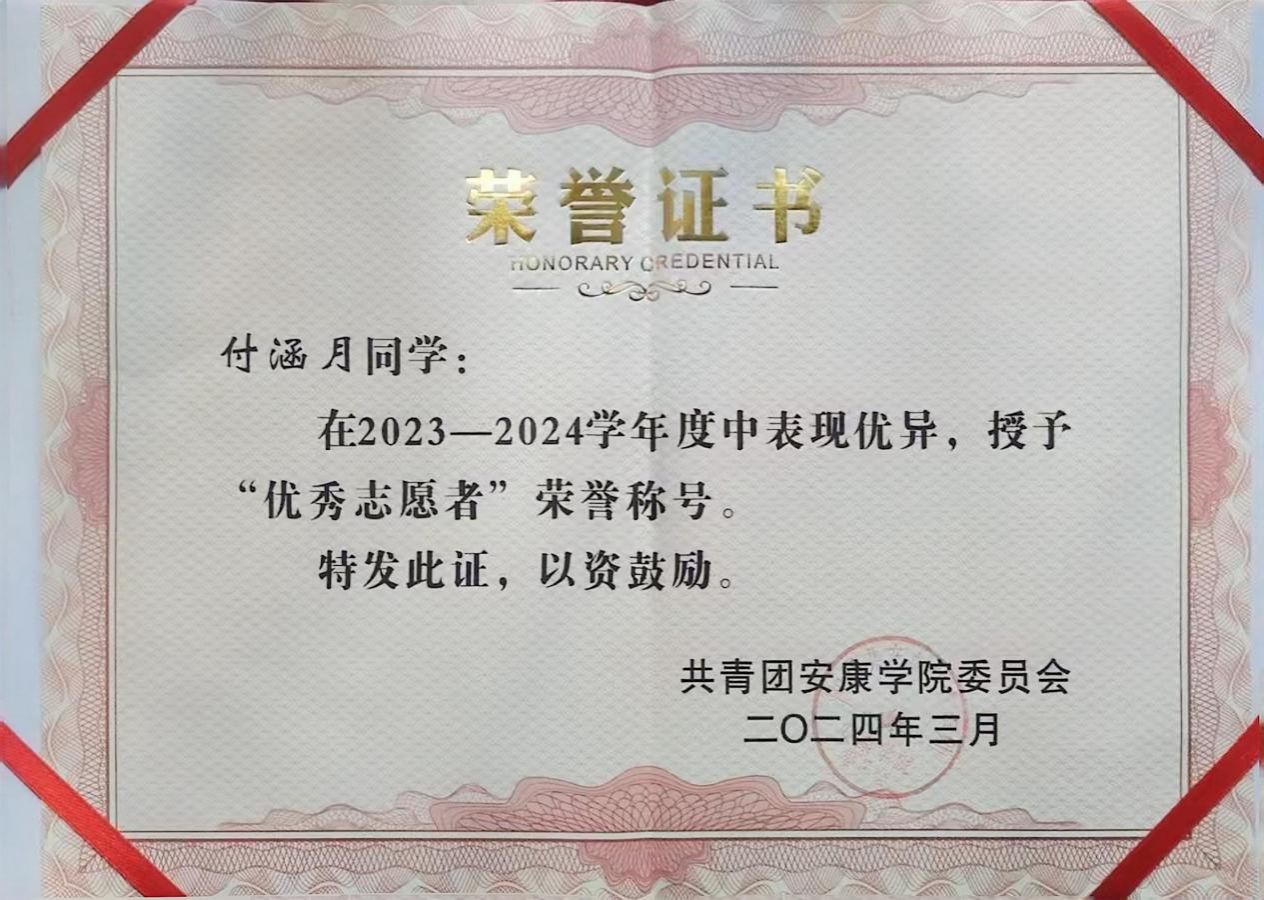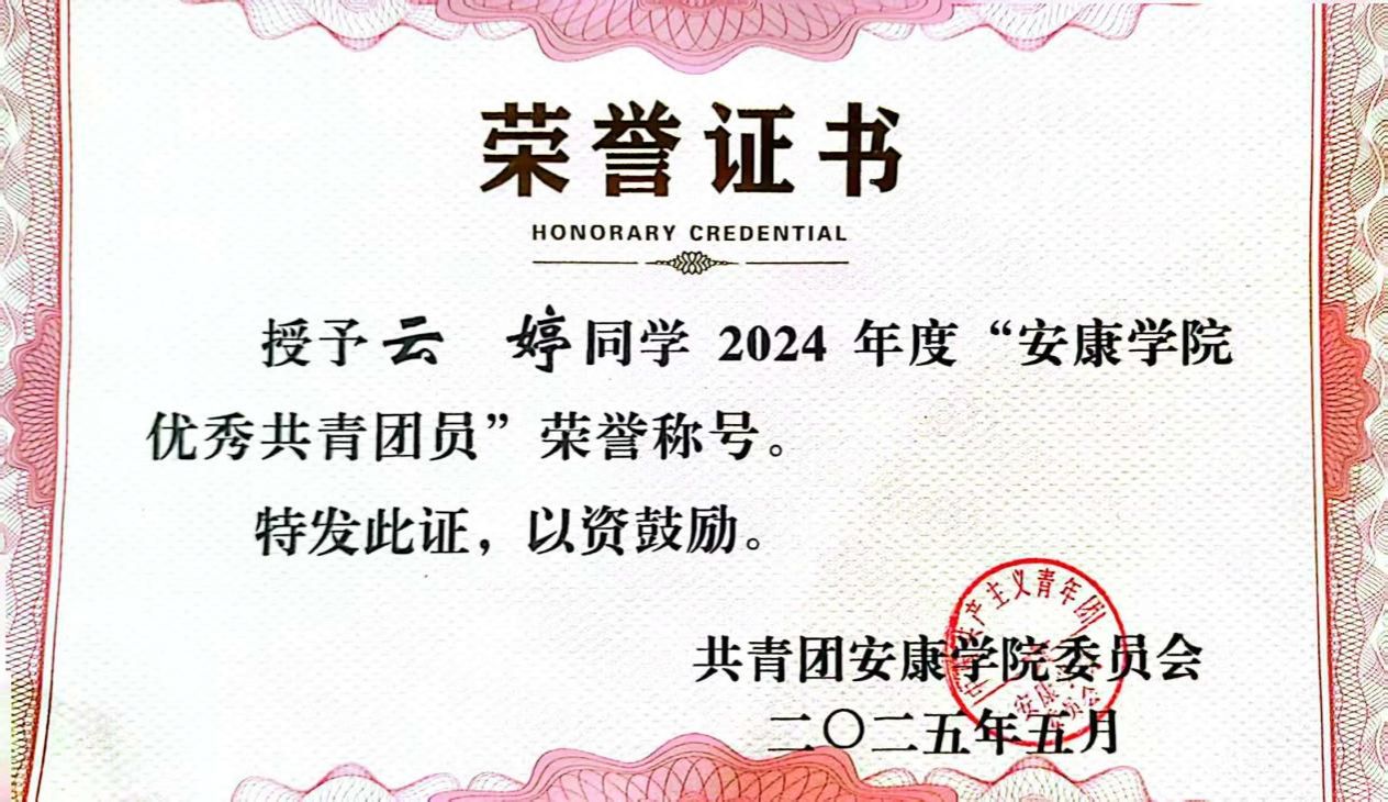 杨荣华,2024级康复2班,甘肃天水人,共青团员,现任太阳成tyc33455ccwww团总支员工会秘书部部长,班级副班长。