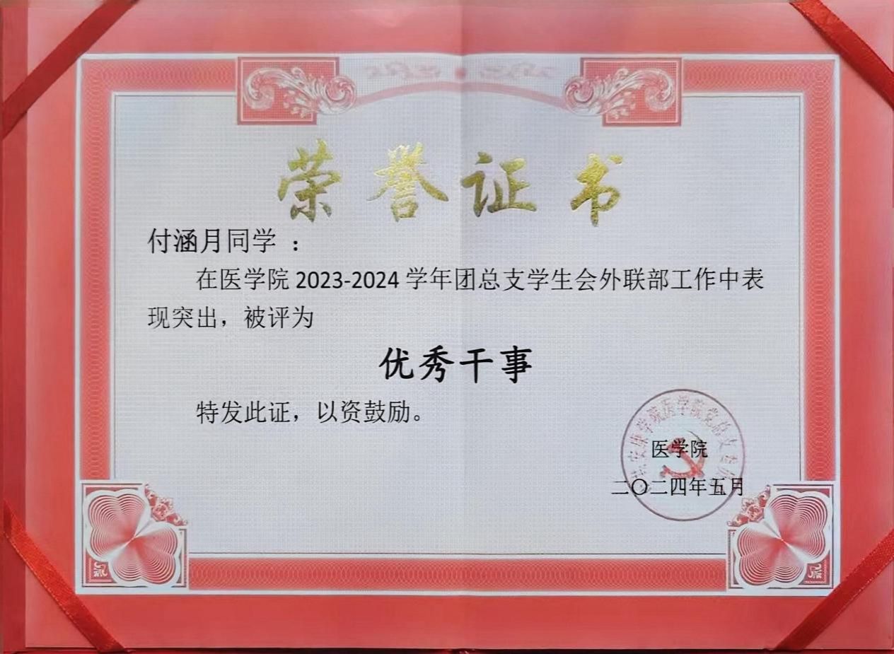 李璐,24级护理学一班,陕西省西安市人,共青团员,现任太阳成tyc33455ccwww团总支员工会文艺部部长, 知行康复社副社长,班级班长。