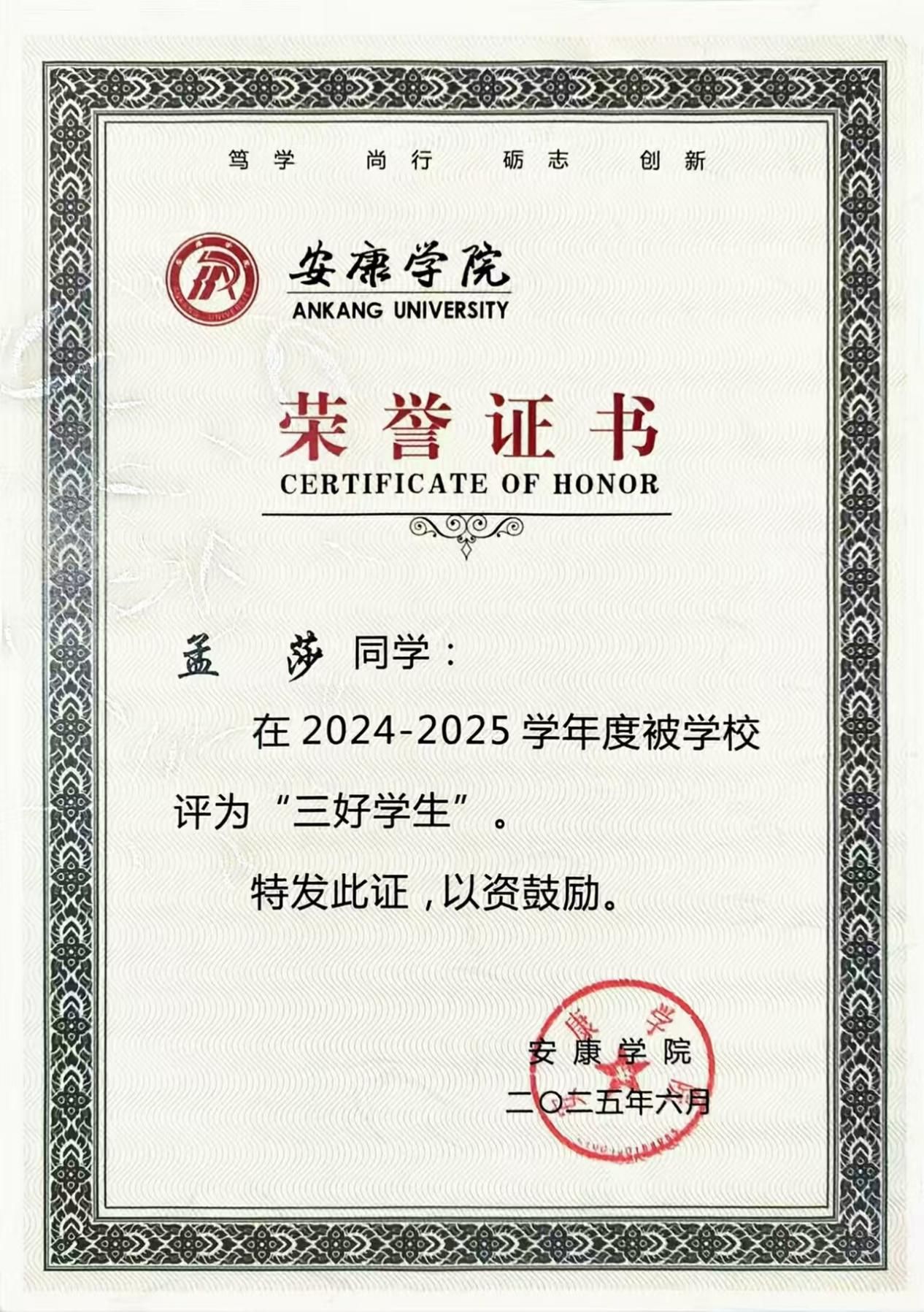 持续的积累让我构建起完整的知识体系,这份荣誉更坚定了我的学习信念。未来我会继续保持勤学善思的态度,深耕专业知识,为护理职业发展筑牢根基。